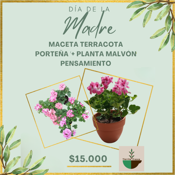 🌿 Maceta terracota porteña + planta (malvón o pensamiento)